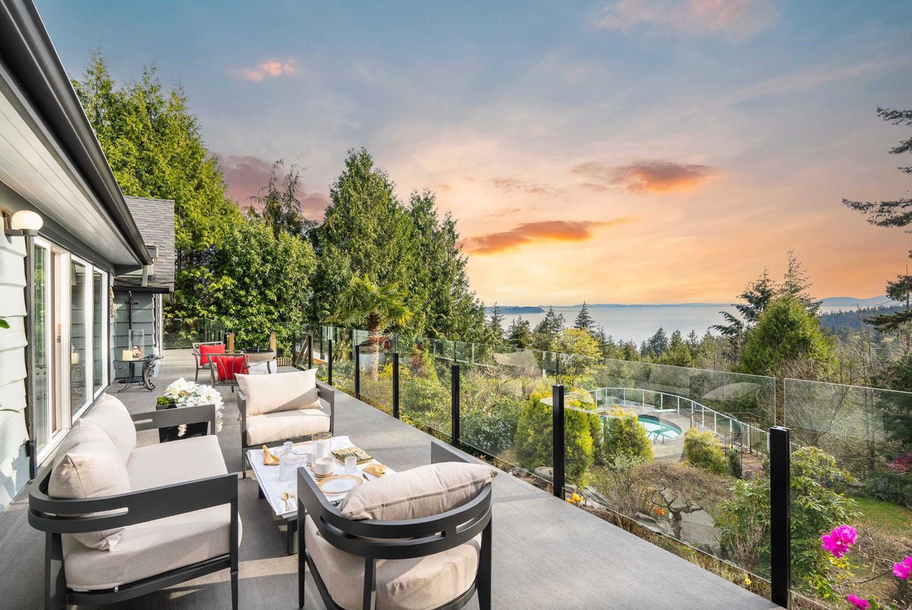 Located in the highly sought-after Rockridge neighborhood, this exceptional 0.59-acre property offers breathtaking ocean and island views from nearly every room. Extensively updated and beautifully maintained, the home provides over 5,000 square feet of refined living space across two spacious levels. With seven bedrooms and four and a half bathrooms, it easily accommodates both family living and guest stays. The heart of the home is a recently renovated modern kitchen, complete with a large island and top-grade appliances, seamlessly connected to a welcoming family room, recreation room, and a private home office. The generous primary suite enjoys exceptional views and a serene sense of privacy. Outside, a large view-side terrace overlooks mature gardens, a heated swimming pool, and a hot tub, creating a resort-like atmosphere perfect for entertaining or relaxing. Ideally positioned within walking distance to Caulfeild Elementary, Rockridge Secondary, Stearman Beach, and the Caulfeild Village Shopping Centre, this residence offers a rare combination of lifestyle, luxury, and location.