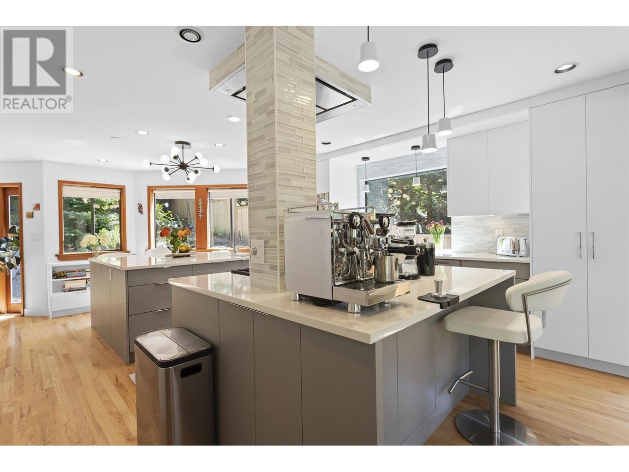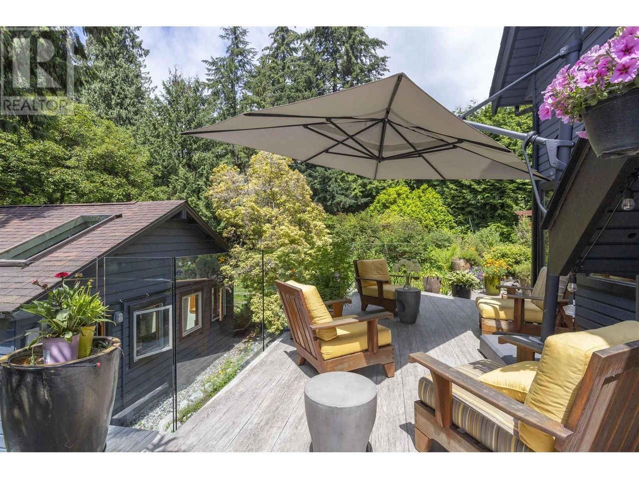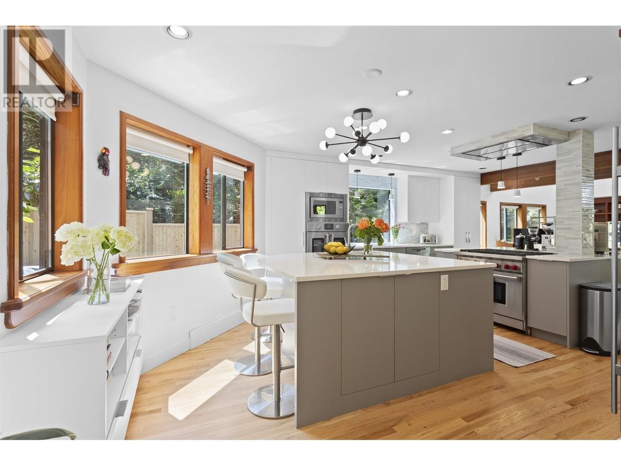 Discover an exquisite private fully fenced yard in West Van featuring two houses! Nestled in the serene Caulfeild area, this 3-bed/4-bath property offers asmooth blend of modern luxury and charm on a sprawling, flat 0.5-acre, fully fenced lot. Surrounded by beautiful trees and gardens, it presents a nurturing environment with a contemporary style. Solid oak hardwood floors and vaulted ceilings create a spacious, airy ambiance. The kitchen, a chef’s dream, boasts high-end stainless steel appliances. The upstairs primary suite includes a spa-like bathroom with a steam room. A versatile coachhouse can serve as a fourth bedroom, in-law suite, art studio, or office. This estate provides ease, flexibility, and tranquility.
