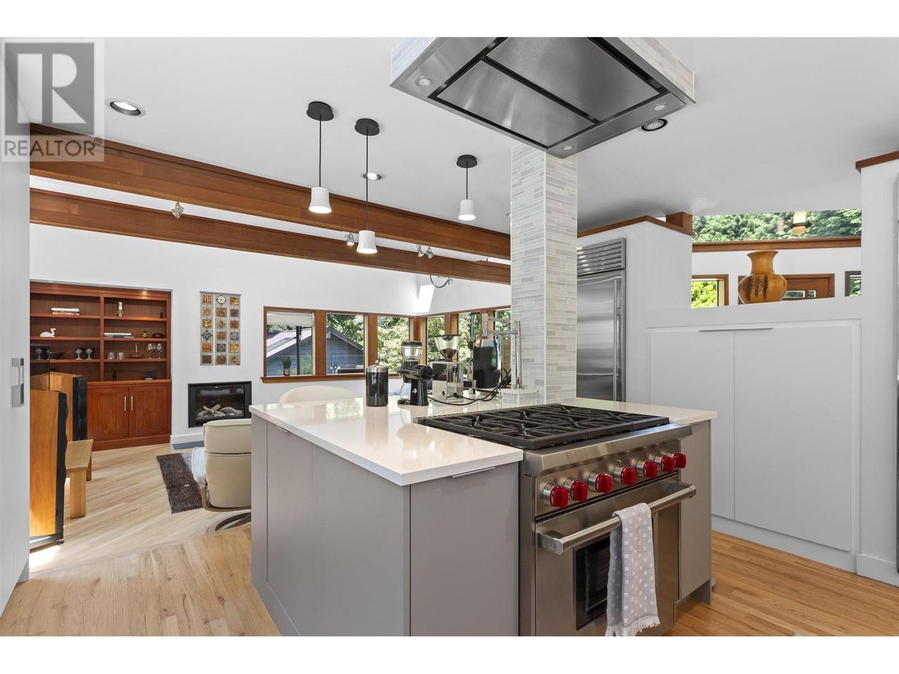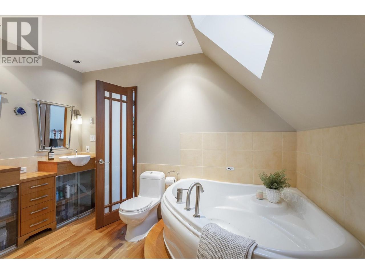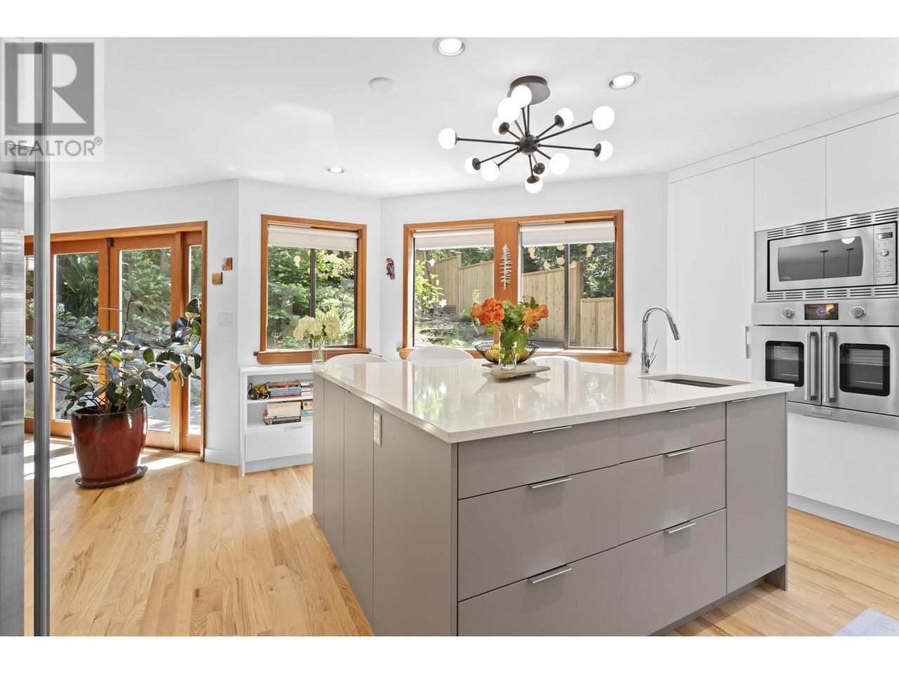 Discover an exquisite private fully fenced yard in West Van featuring two houses! Nestled in the serene Caulfeild area, this 3-bed/4-bath property offers asmooth blend of modern luxury and charm on a sprawling, flat 0.5-acre, fully fenced lot. Surrounded by beautiful trees and gardens, it presents a nurturing environment with a contemporary style. Solid oak hardwood floors and vaulted ceilings create a spacious, airy ambiance. The kitchen, a chef’s dream, boasts high-end stainless steel appliances. The upstairs primary suite includes a spa-like bathroom with a steam room. A versatile coachhouse can serve as a fourth bedroom, in-law suite, art studio, or office. This estate provides ease, flexibility, and tranquility.