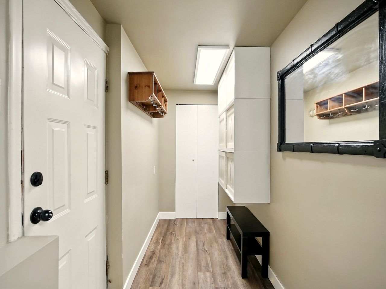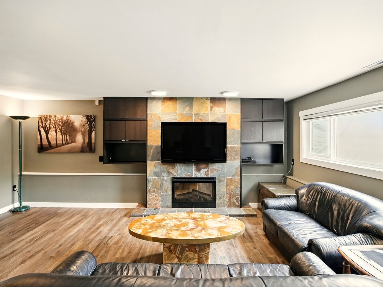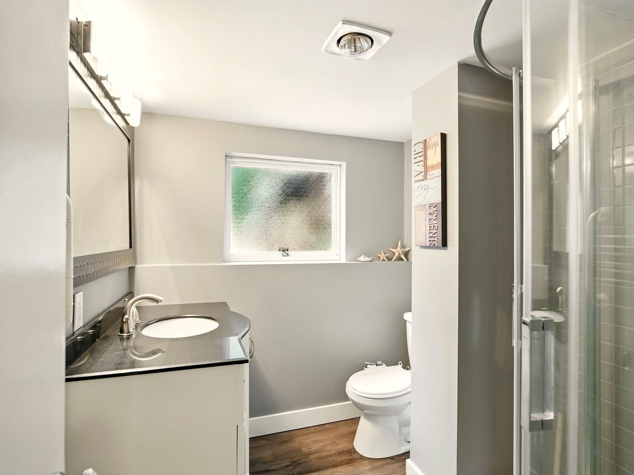 This extensively updated four-bedroom, three-bathroom residence is situated on a quiet, family-oriented street and offers a flexible layout with room to grow. The open-concept living, dining, and kitchen area on the main floor is ideal for entertaining, featuring three bedrooms including a generously sized primary bedroom with an ensuite. The lower level includes a fourth bedroom and full bathroom, with potential for a separate suite. A single-car garage, combined mud room and laundry area, and a large recreation room complete the lower level.