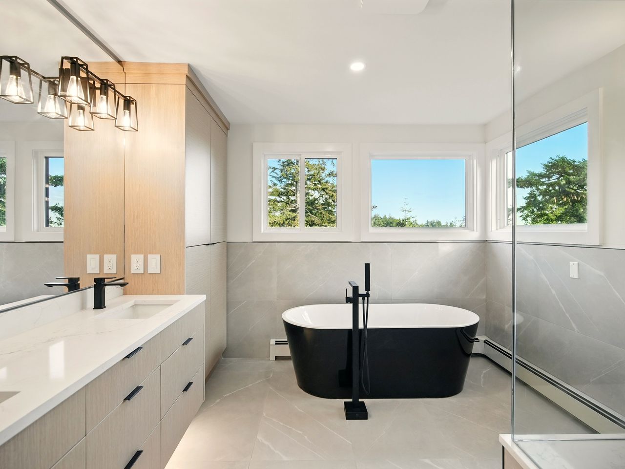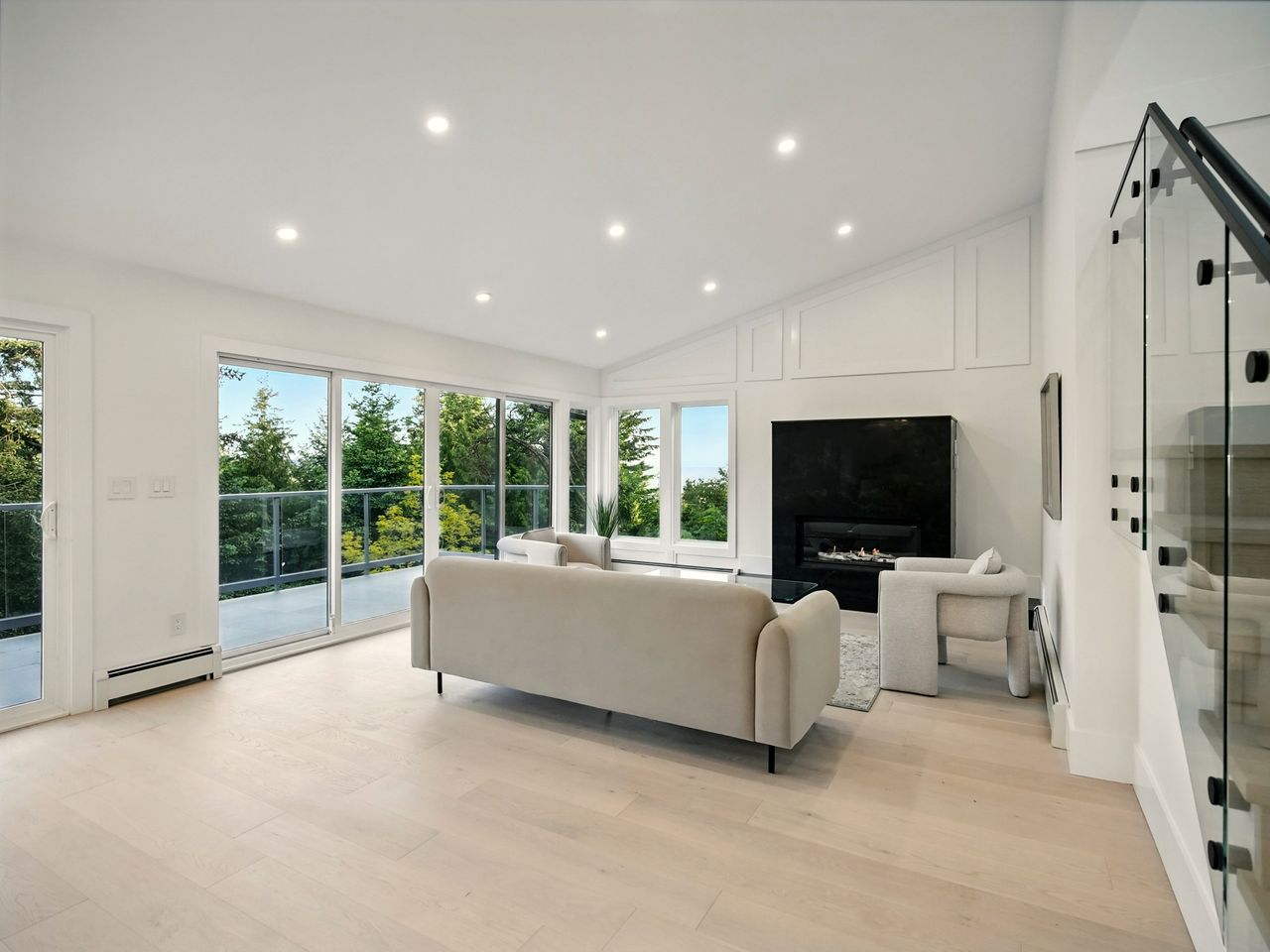 Perched on a gorgeous, sunny, 16,553 sq/ft view lot rests this substantially renovated 4,100 sq/ft house that includes a 900 sq/ft permitted addition. This flawless renovation offers an incredible open main floorplan with a new high-end kitchen, living & dining rooms that open to the massive south-facing deck with ocean views. The main floor also includes a bedroom with ensuite, mudroom and garage with EV charger. Upstairs boasts 4 bedrooms with a huge primary bedroom, WIC & spa-like ensuite equipped with a steam shower. Lower floor has a bright 1,066 sq/ft 2bedroom suite, perfect for guests or a long-term rental. This home features new windows, roof, decks, plumbing, mechanical & 200 amp power line. Steps to trails, parks, beaches, schools, shopping, Horseshoe Bay & Gleneagles Golf Course; located in a truly magnificent family friendly area.