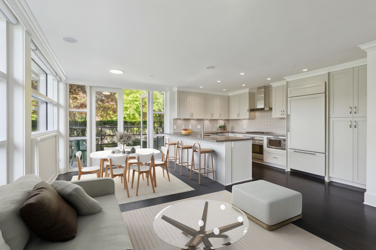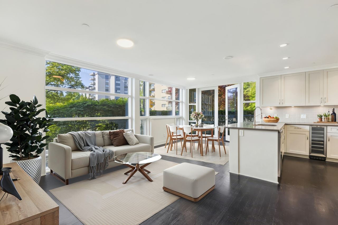 This luxurious West Vancouver condo is one of just 10 exclusive residences at Parkview Place, a boutique concrete building in the heart of Ambleside. Designed by acclaimed architect Karl Gustavson and built by Linda Burger & Associates, this corner south-facing home features a custom floor plan that offers exceptional space and comfort. High-end appliances, premium finishes, and floor-to-ceiling custom closets are found throughout. Enjoy seamless indoor-outdoor living with a bright patio ideal for barbecues and alfresco dining. The unit also includes electric blinds, is fully wheelchair accessible with convenient street-level entry, and comes with two large side-by-side underground parking stalls plus a full-size storage locker. Steps to restaurants, shopping and Ambleside Beach.