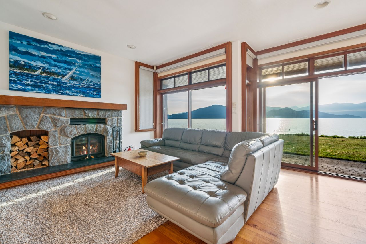 Discover the beauty of West Coast living at this exceptional waterfront retreat, where 80 feet of ocean frontage frames sweeping views & spectacular sunsets. Perfectly positioned on an 8,815 sqft lot, this gated property enjoys all-day sun & remarkable wildlife encounters—watch humpback whales & orcas from your patio or living room. The 1,917 sqft home offers an open, inviting layout on the main floor, where the kitchen, dining, and living areas flow seamlessly to a flat outdoor dining terrace & grassy lawn. Upstairs, two serene bedrooms capture the tranquility of the setting with natural light and ocean vistas. Complete with a two-car garage & a private buoy for your boat, this home is designed for effortless coastal living. Every element invites you to slow down & savour life by the sea.