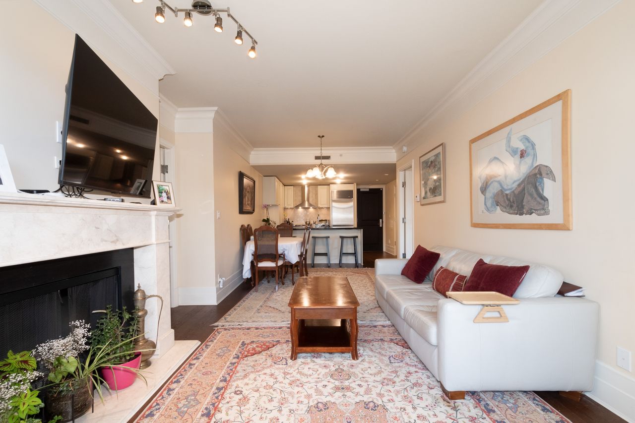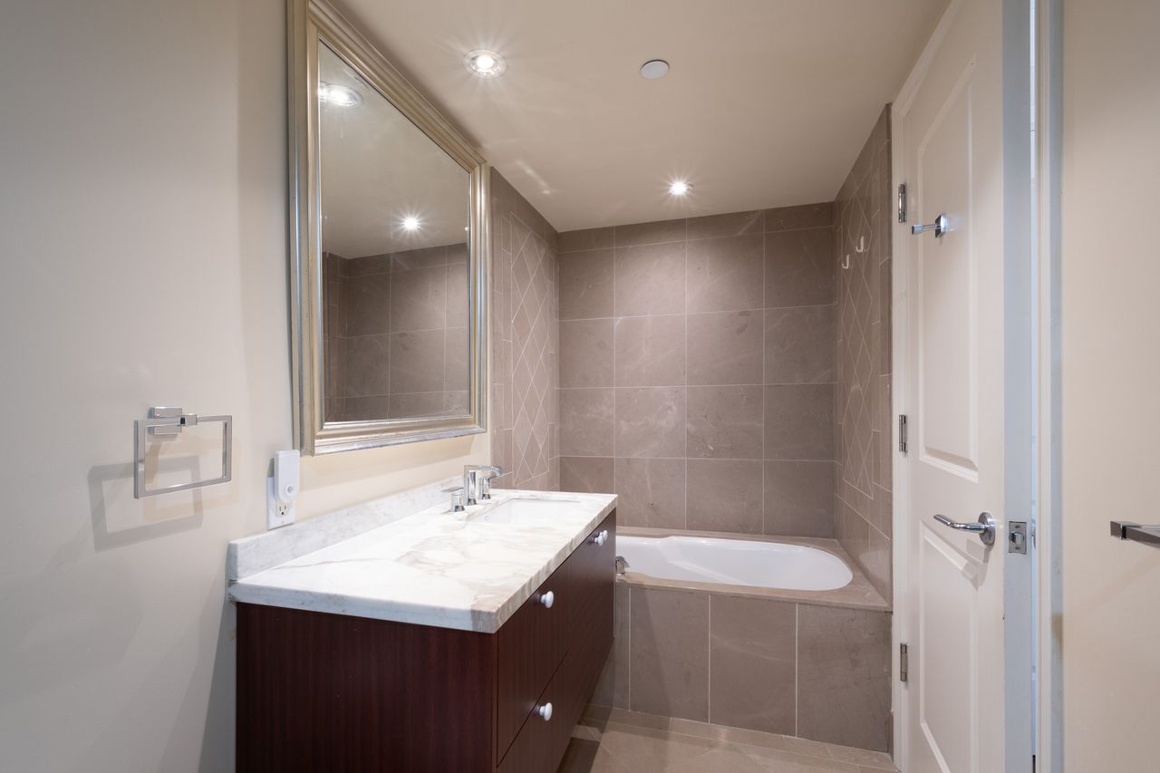 This refined 2-bedroom corner suite features a bright southwest-facing den, generous indoor/outdoor space, 9 ft. ceilings, hardwood floors, electric fireplace, and high-end Miele and Sub-Zero appliances. The spa-like bathrooms and thoughtful layout create a sophisticated and comfortable living experience.
