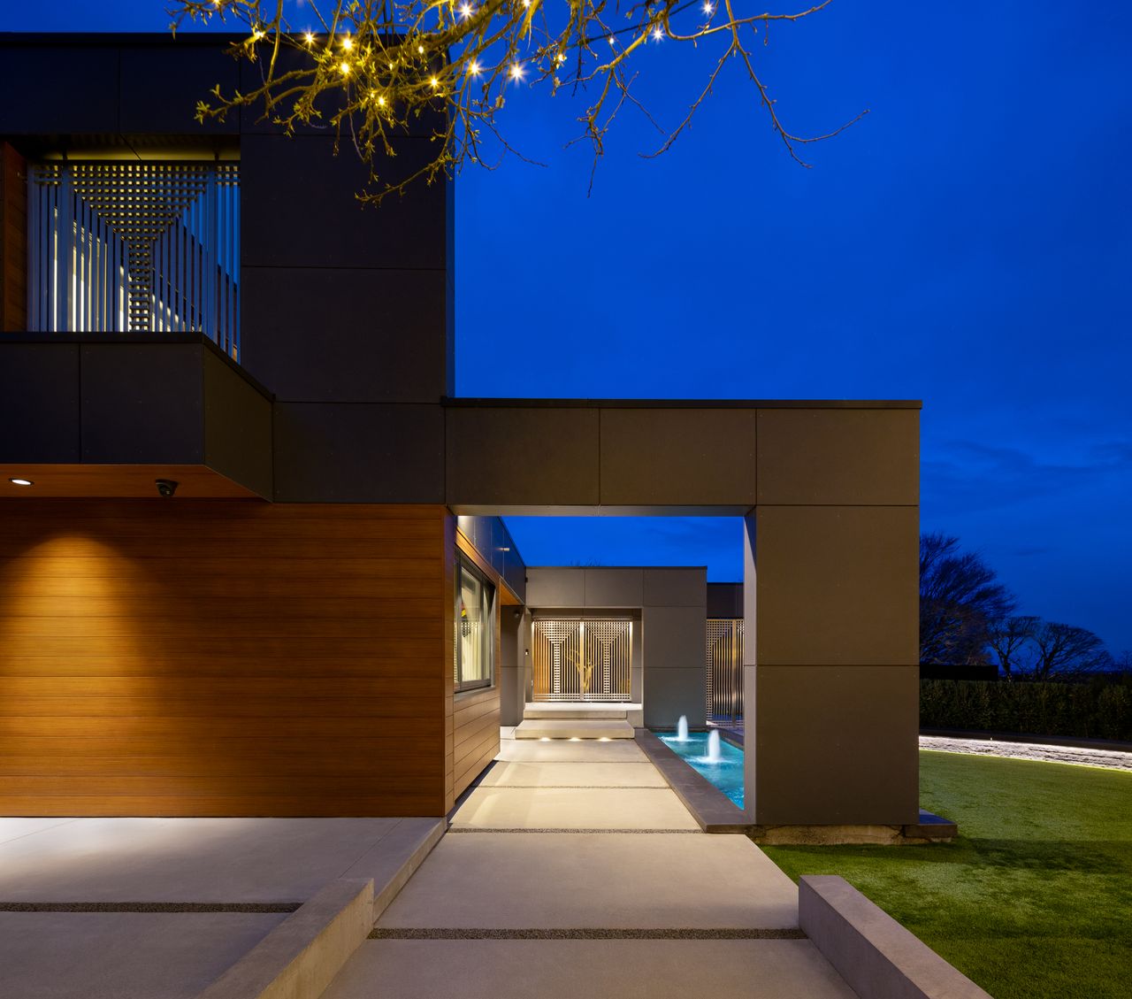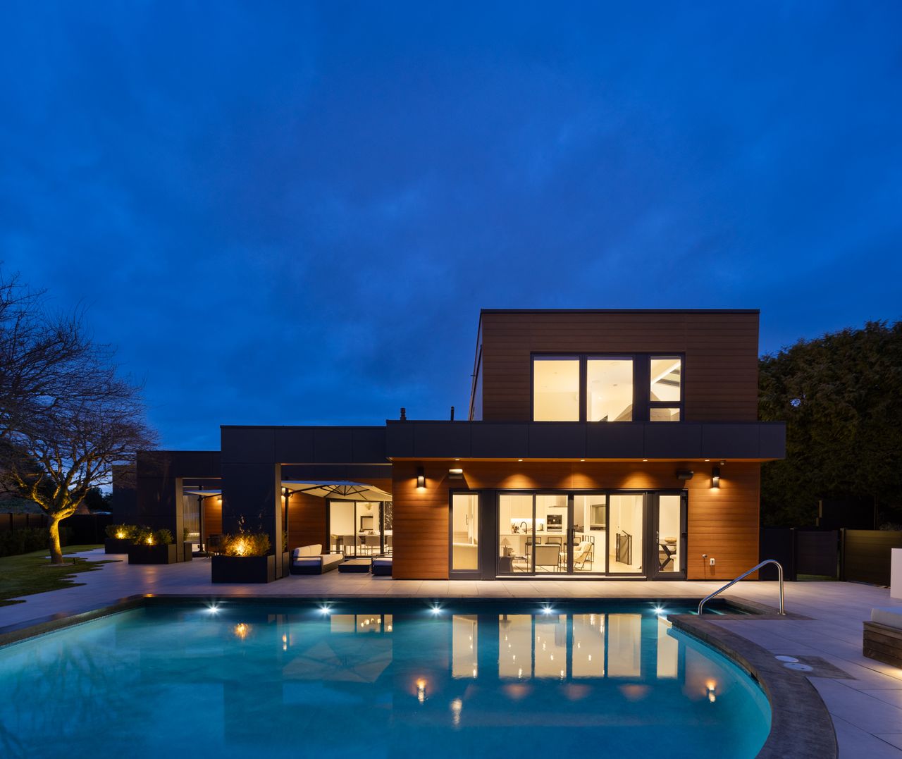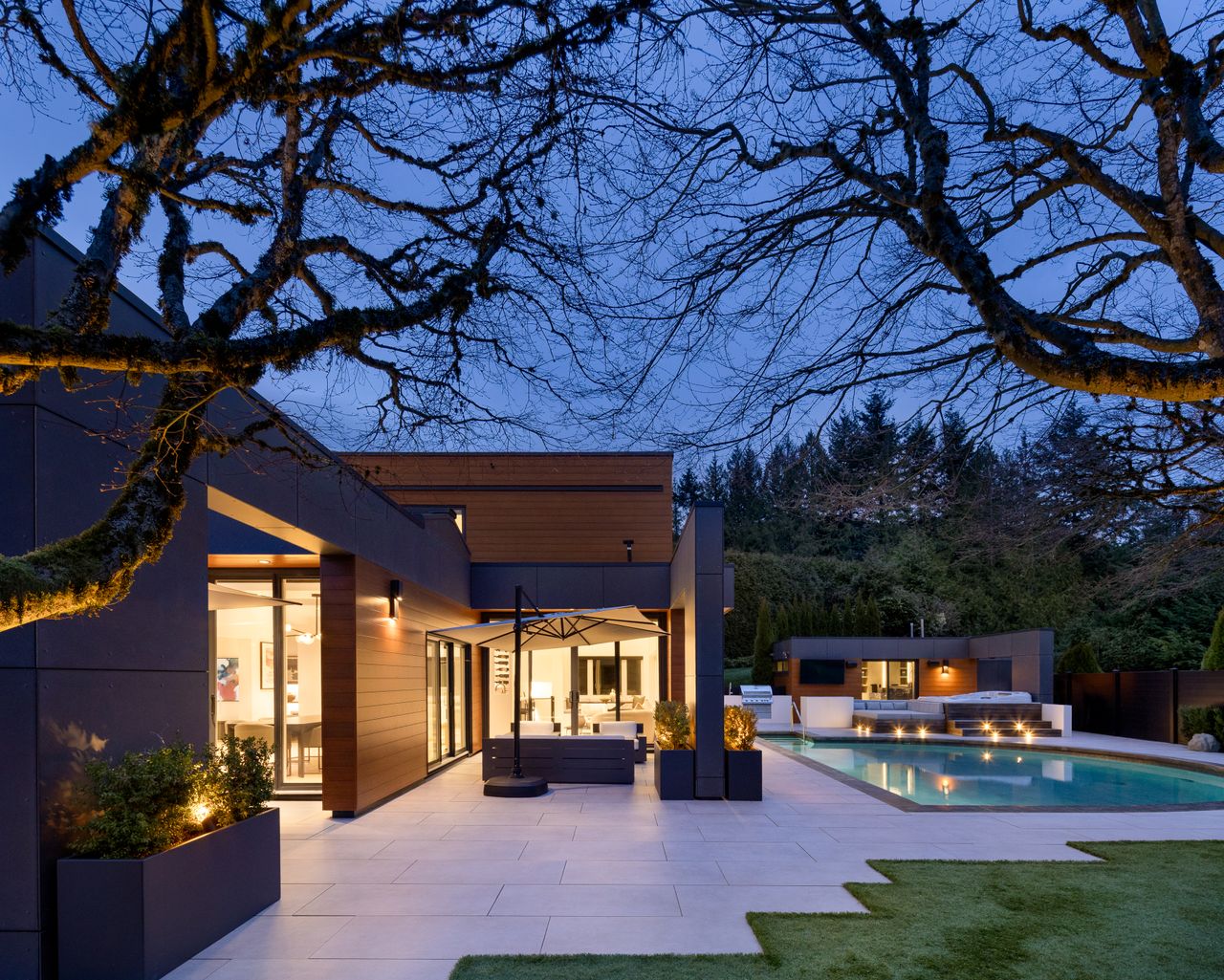 Outdoors, the residence transforms into a private resort. A sculptural pool, hot tub, outdoor kitchen, and cabana with marble interiors, steam room, and shower combine to create a setting for relaxation and entertaining unlike any other.