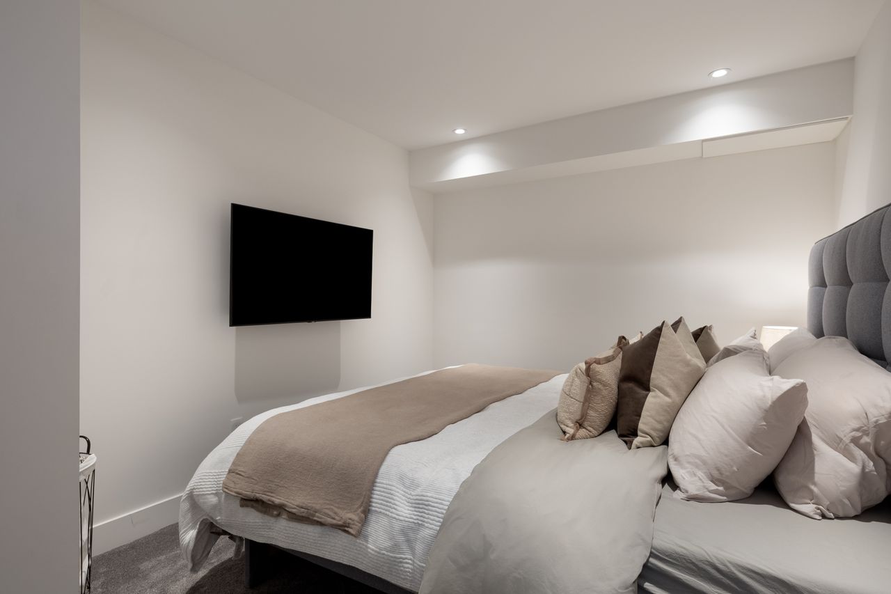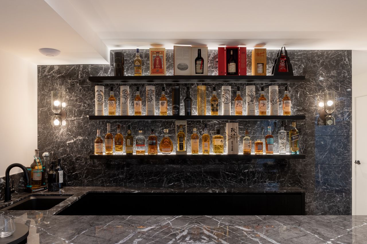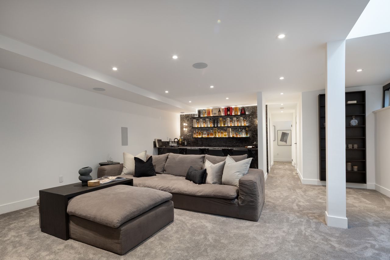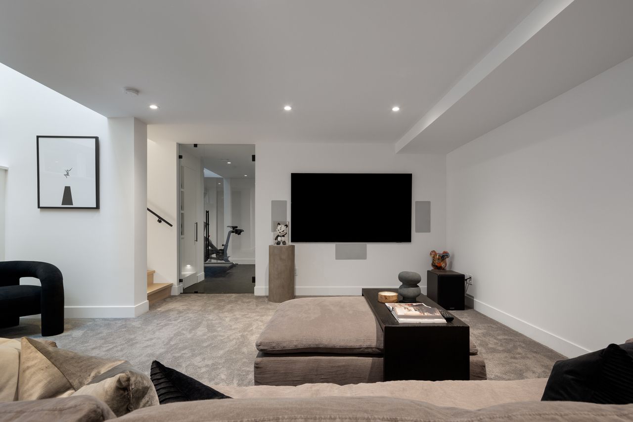 The upper level features three ensuited bedrooms, including a private primary suite with ocean views, Poliform closets, and a spa-inspired bathroom. A versatile flex space offers the option for a fourth bedroom or additional lounge. The lower level is designed for entertaining and wellness, with a theatre, bar, gym, and guest suite.