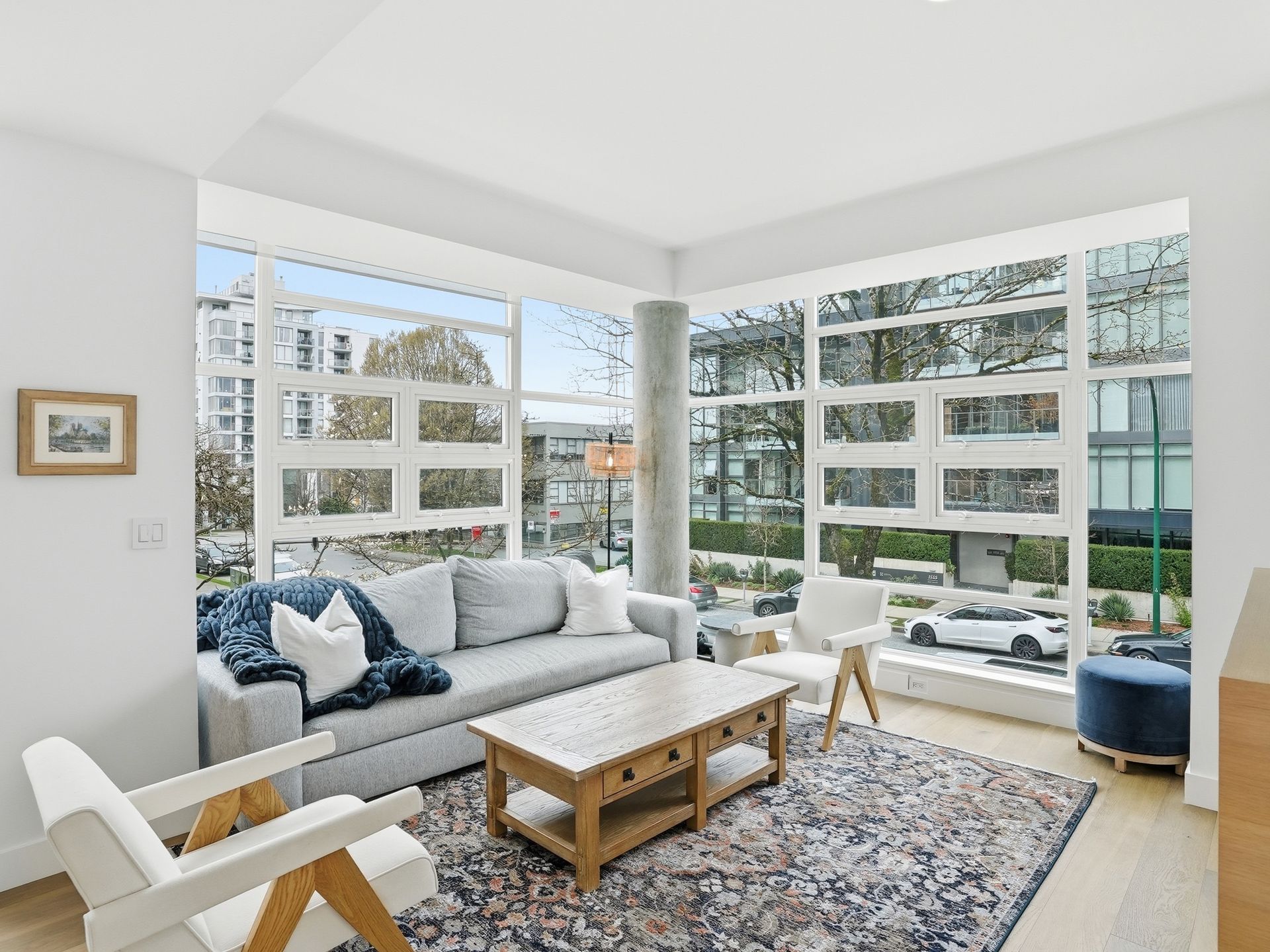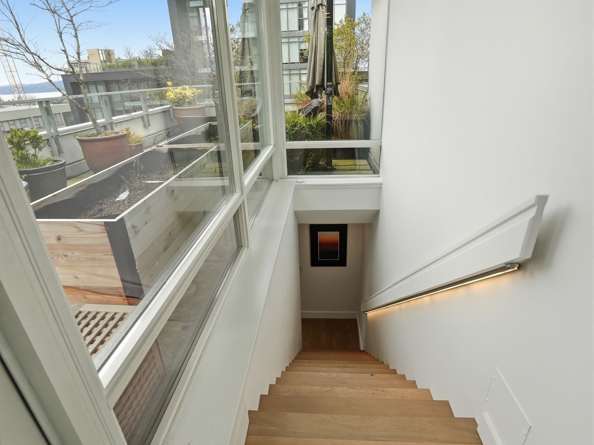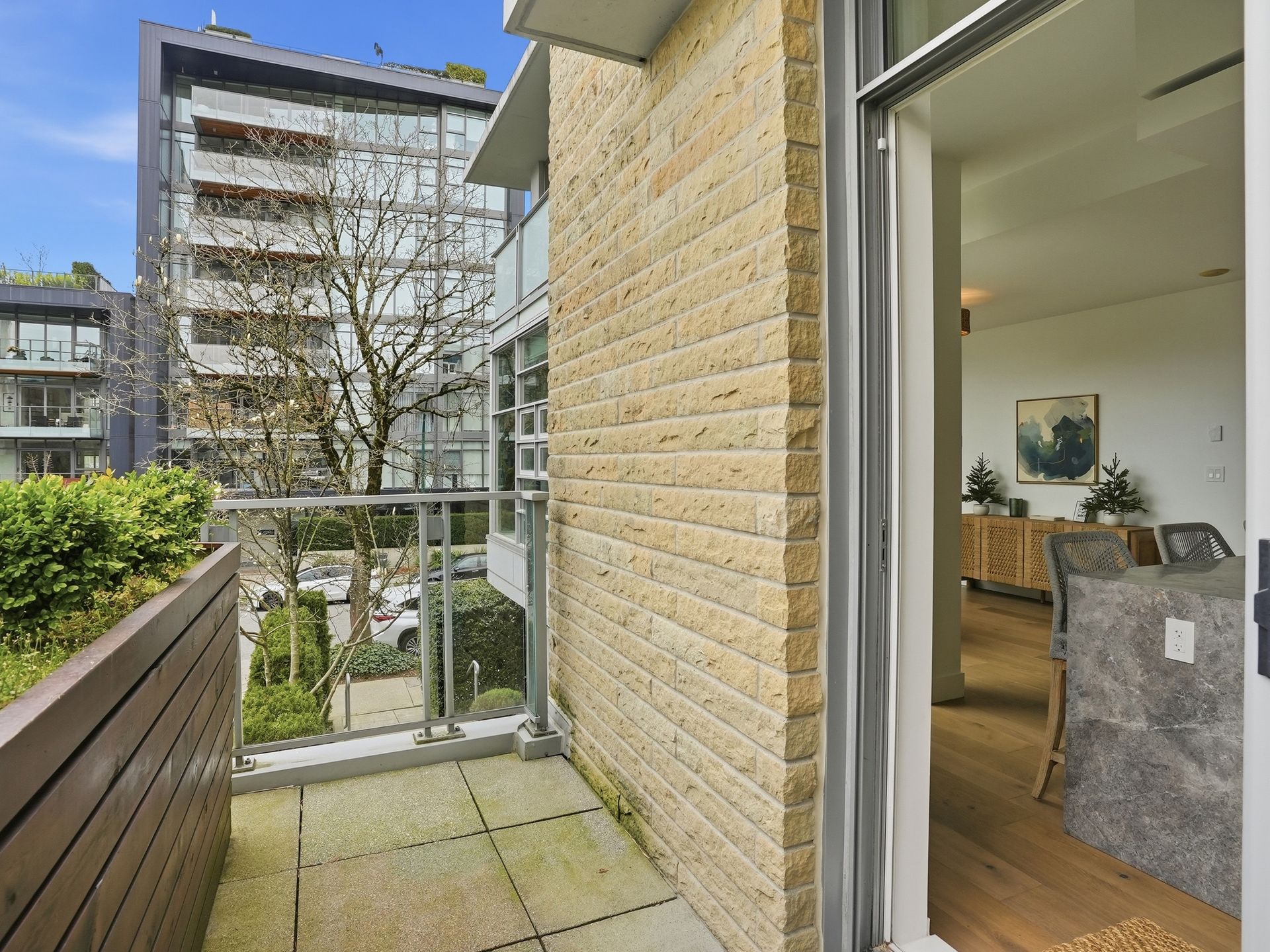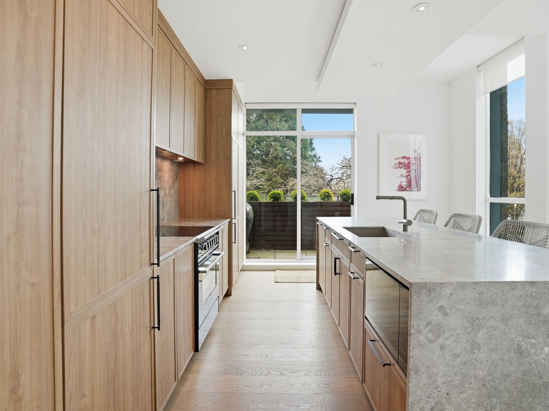 Beautifully reimagined concrete 1,794 sq/ft corner townhome at PINTURA offering exceptional light, privacy, and space. Featuring soaring ceilings and a brand-new high-end designer kitchen with coffee bar/shake station, opening to a sunny BBQ terrace. Upper level includes a luxurious primary suite with spa-like ensuite, spacious second bedroom, and full bathroom. Lower level offers a versatile third bedroom with a stunning new full bathroom—ideal for guests or a home office. New flooring and paint throughout. Expansive rooftop deck with water and mountain views, outdoor fireplace, and gas hookup. Direct access to secure 2-car garage with large private storage. Located on a quiet tree-lined street, only steps to cafes, shopping and top restaurants.