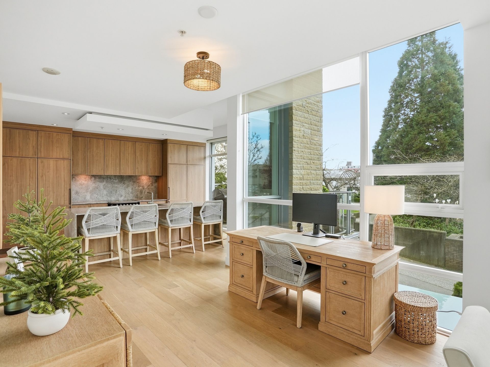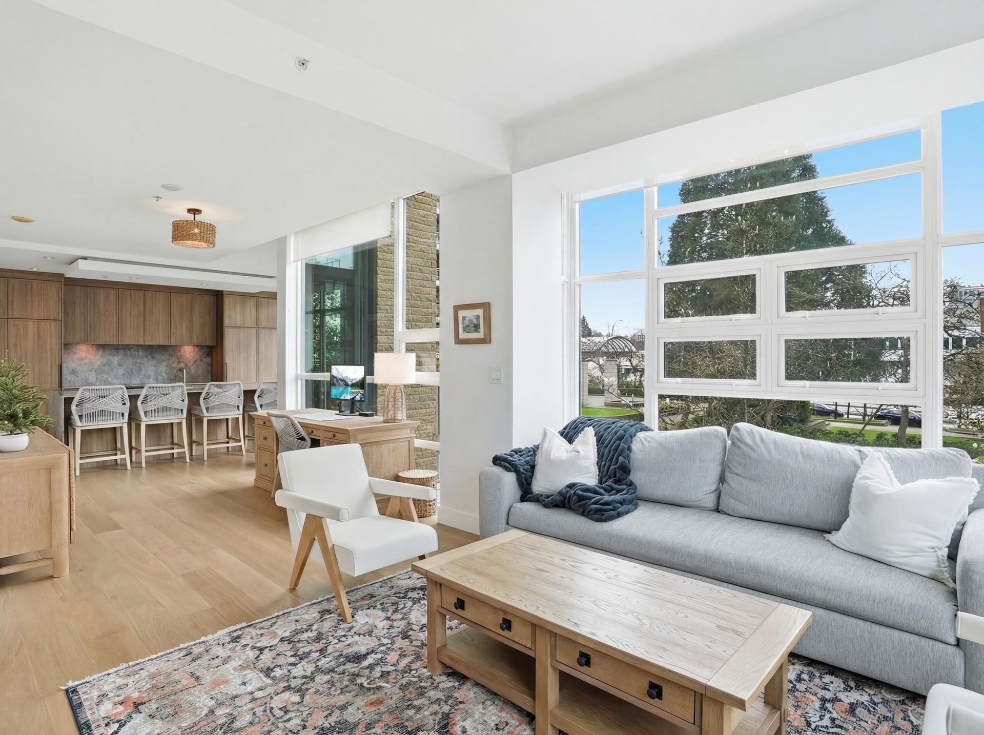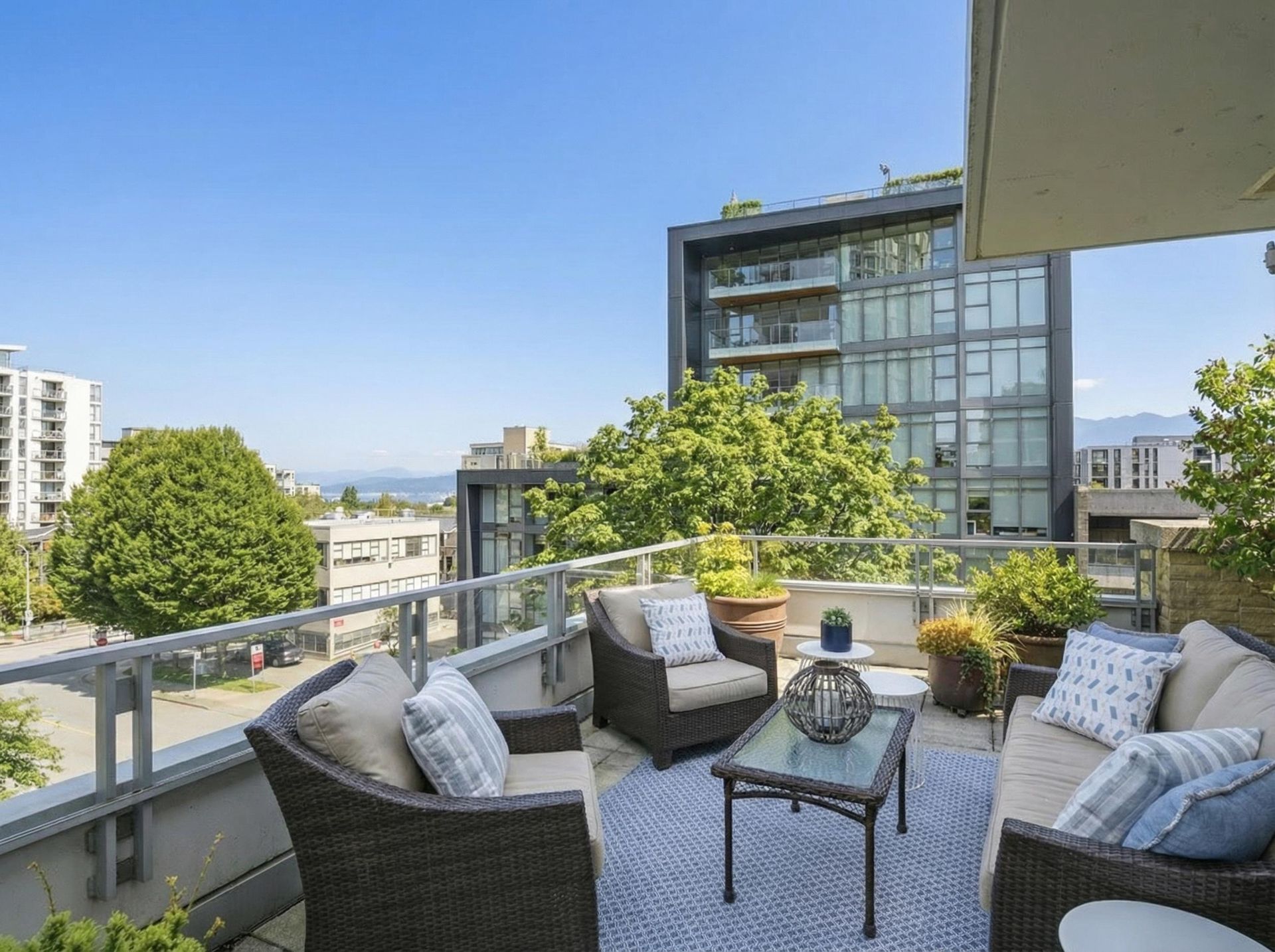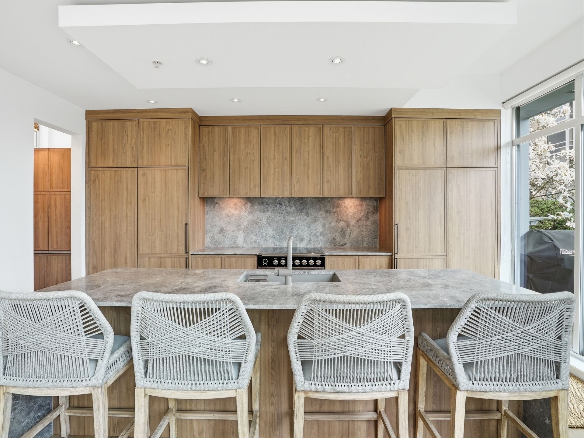 Beautifully reimagined concrete 1,794 sq/ft corner townhome at PINTURA offering exceptional light, privacy, and space. Featuring soaring ceilings and a brand-new high-end designer kitchen with coffee bar/shake station, opening to a sunny BBQ terrace. Upper level includes a luxurious primary suite with spa-like ensuite, spacious second bedroom, and full bathroom. Lower level offers a versatile third bedroom with a stunning new full bathroom—ideal for guests or a home office. New flooring and paint throughout. Expansive rooftop deck with water and mountain views, outdoor fireplace, and gas hookup. Direct access to secure 2-car garage with large private storage. Located on a quiet tree-lined street, only steps to cafes, shopping and top restaurants.