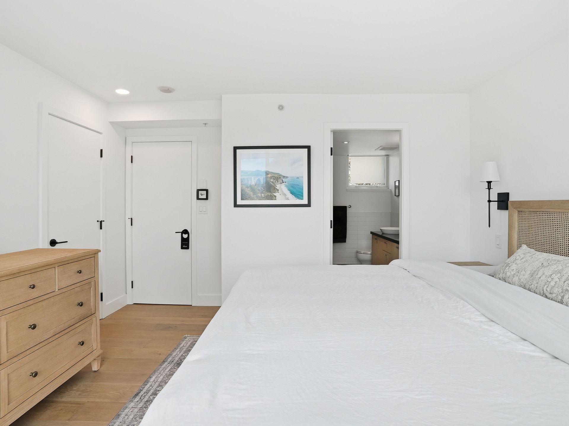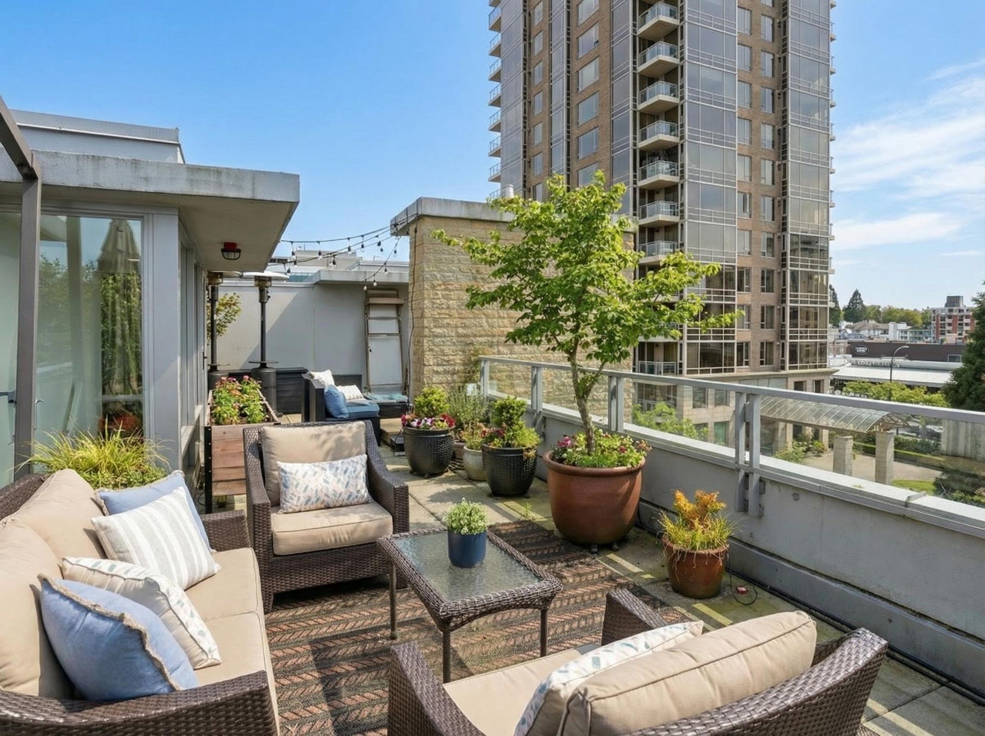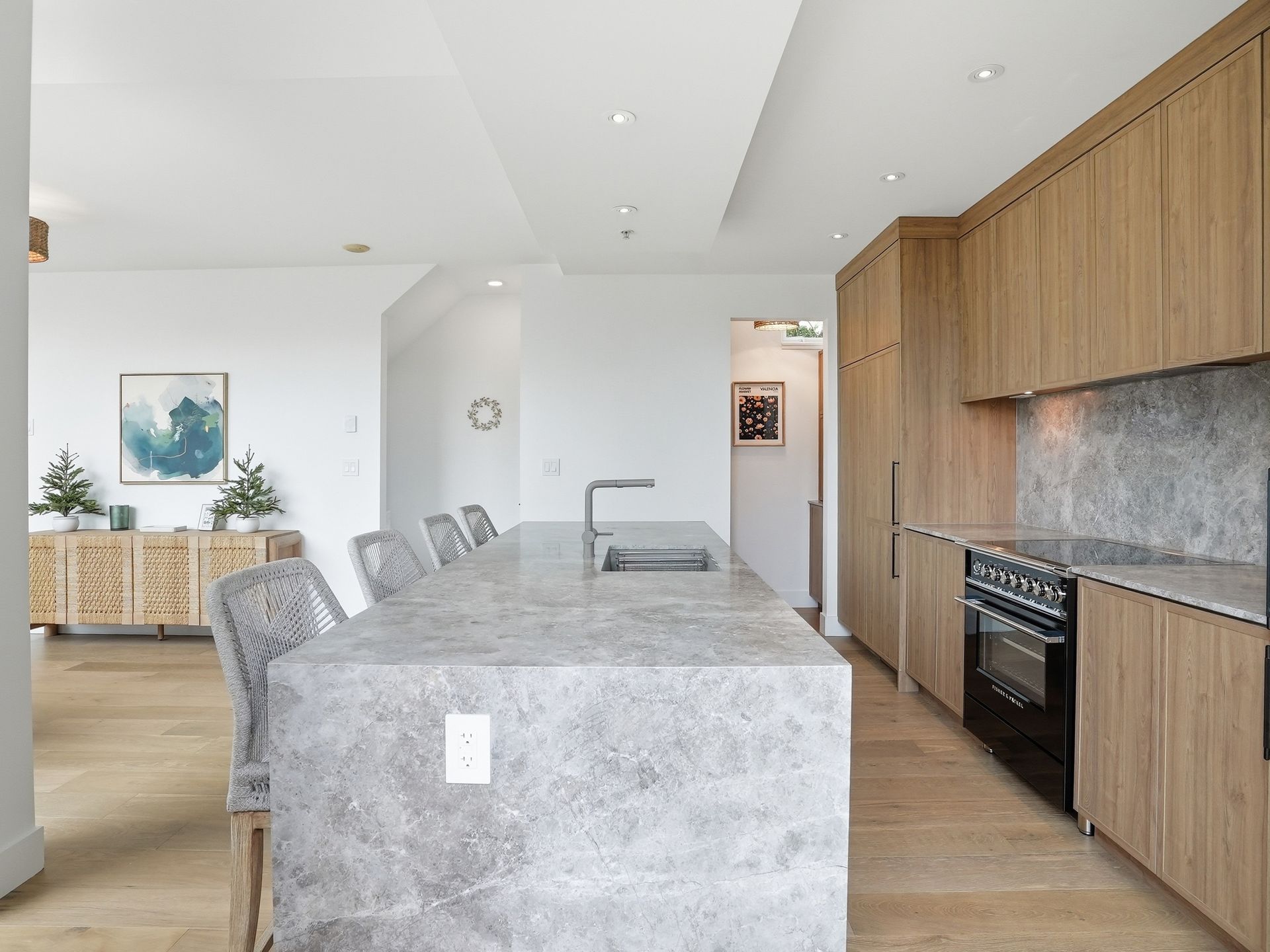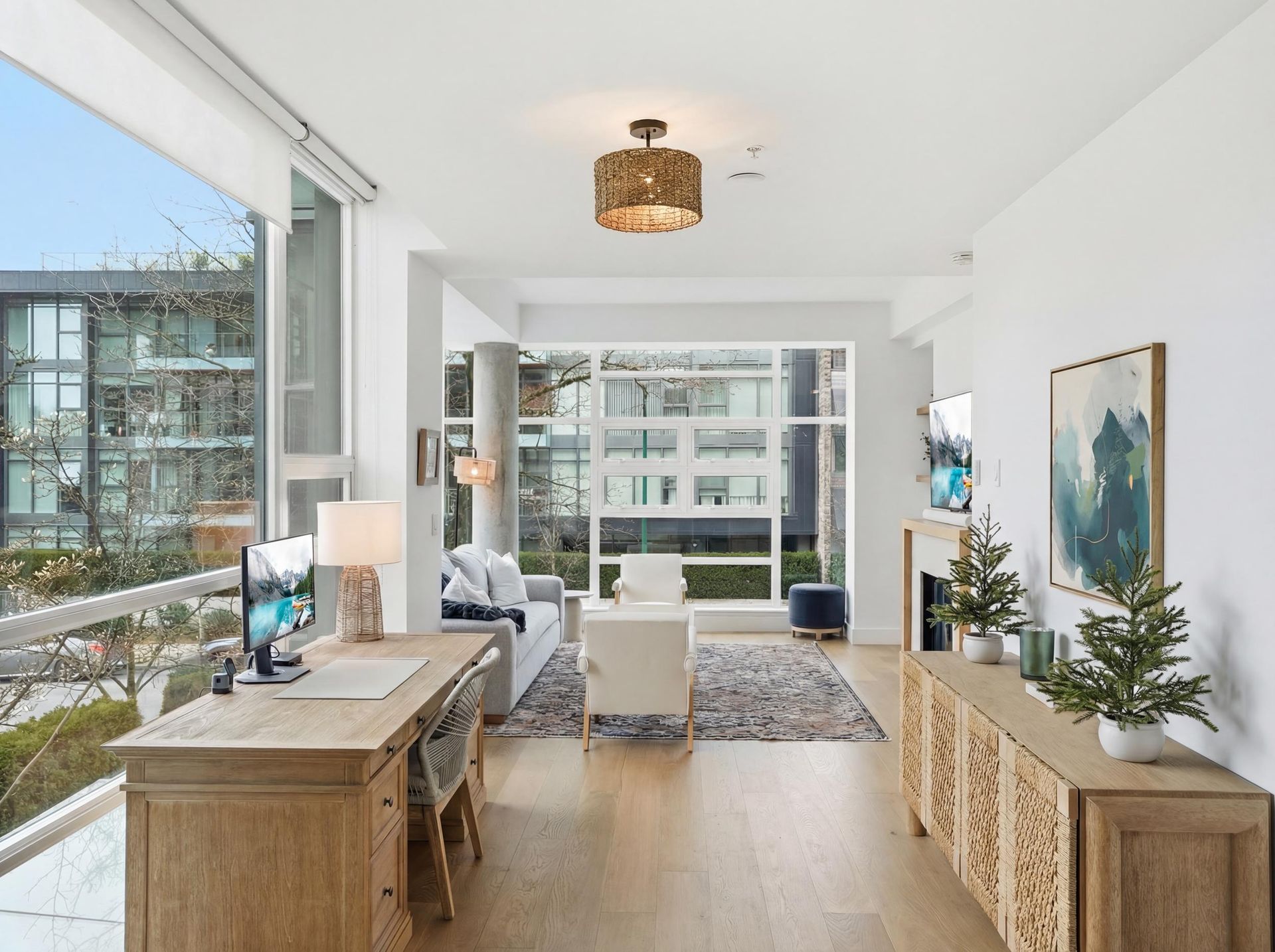 Beautifully reimagined concrete 1,794 sq/ft corner townhome at PINTURA offering exceptional light, privacy, and space. Featuring soaring ceilings and a brand-new high-end designer kitchen with coffee bar/shake station, opening to a sunny BBQ terrace. Upper level includes a luxurious primary suite with spa-like ensuite, spacious second bedroom, and full bathroom. Lower level offers a versatile third bedroom with a stunning new full bathroom—ideal for guests or a home office. New flooring and paint throughout. Expansive rooftop deck with water and mountain views, outdoor fireplace, and gas hookup. Direct access to secure 2-car garage with large private storage. Located on a quiet tree-lined street, only steps to cafes, shopping and top restaurants.